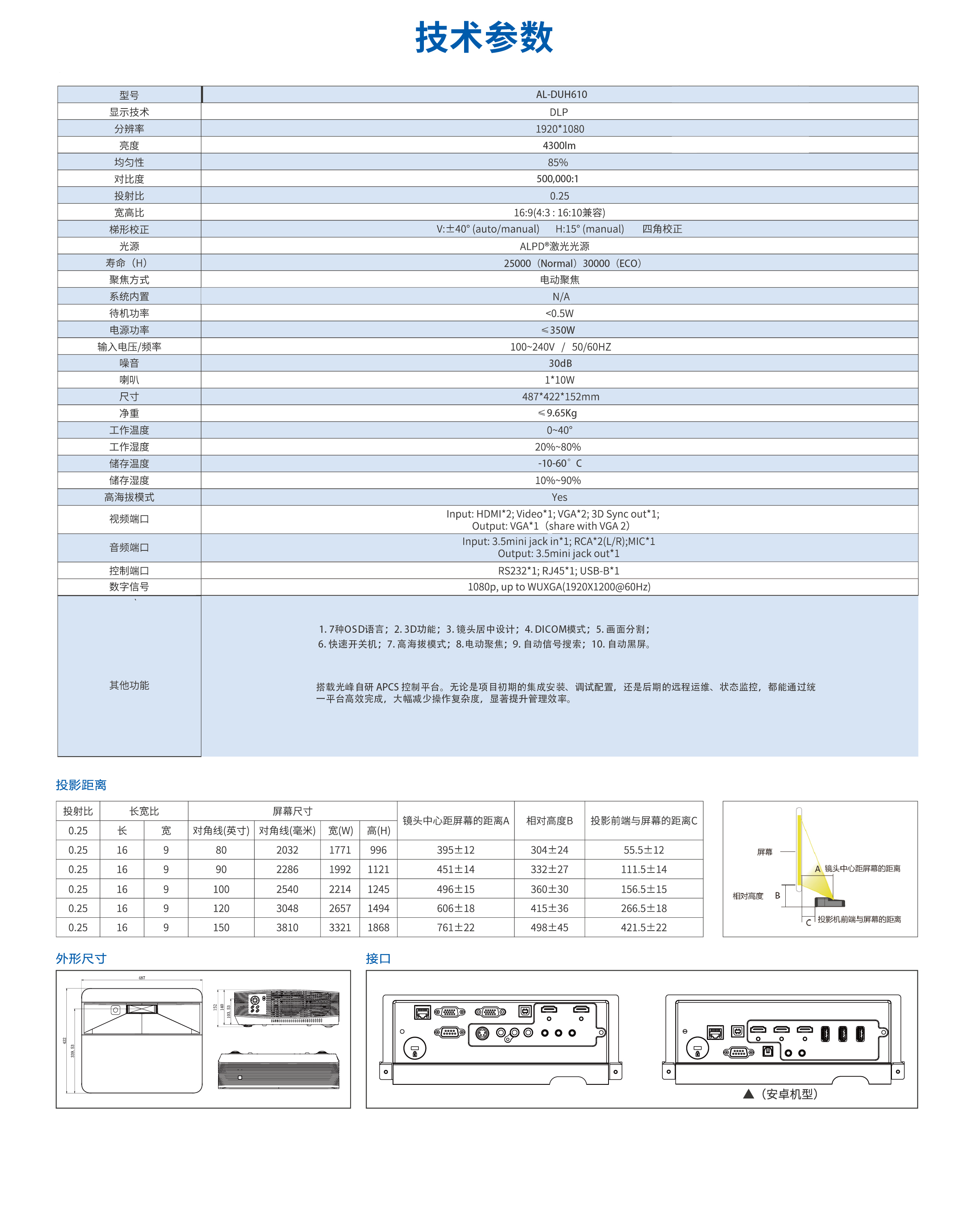 超短焦投影:光峰 AL-DUH610